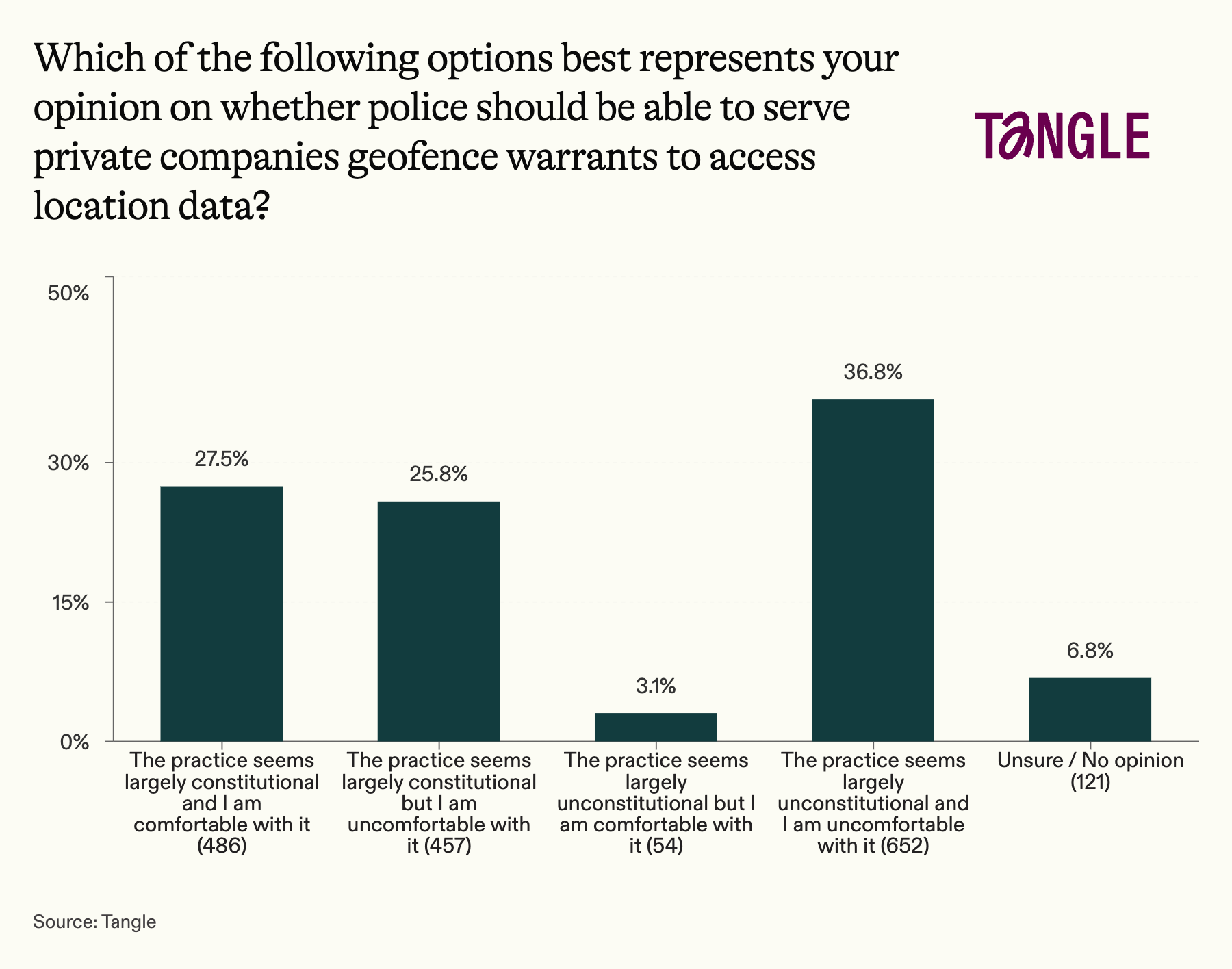 - Our last survey: 1,770 readers responded to our survey on geofence warrants with 37% saying the practice seems unconstitutional and they are uncomfortable with it. “It seems that if the police or FBI have video of the suspect, they have probable cause,” one respondent said. “A search warrant should still be required so that a judge can determine what limits need to be put on for an area to be searched and records which may be seized,” said another.