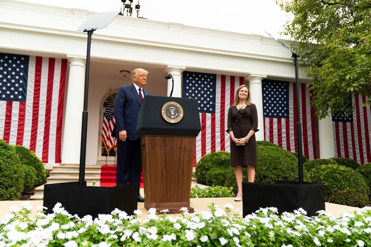 Amy Coney Barrett (right) and President Trump after she was nominated to the Supreme Court. Photo: White House