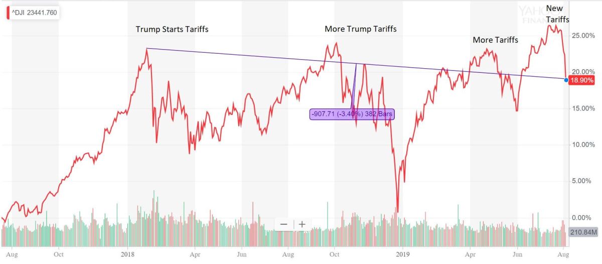 The Wall Street Journal editorial board, a compass of conservative mindset, led with this: “President Trump claims trade wars are easy to win, but that boast looks worse than ever amid the financial carnage from his latest threat of tariffs on Chinese goods. His trade war has now become a currency war, which raises the potential economic harm to another level.” Elsewhere, Trump sycophants are trying to downplay the impact of the latest developments. Fox News’s Laura Ingraham tweeted, “Before the stand off we sent about $160 billion in US exports to China. They sent $500 billion worth of goods here. Do the math—we have a $20 trillion economy. Not a big hit to us. Big for them.” Others just see a president fulfilling his promise to get tough on China, and care more than anything else that he doesn’t flinch in the face of pressure from the “experts,” media, or international trade partners.