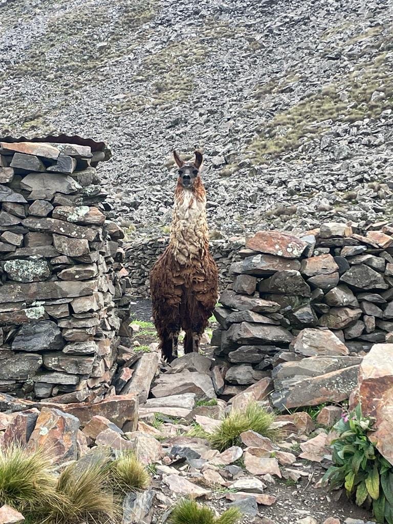 At one point, a group of teenage boys walking along the side of a four-lane highway saw us coming around the bend and all threw their arms into the air, clapping and cheering for us as we passed, as if recognizing we were on a marathon of a ride. We began seeing llamas and alpacas on the side of the road, too, many like this, which became one the great joys of the trip: