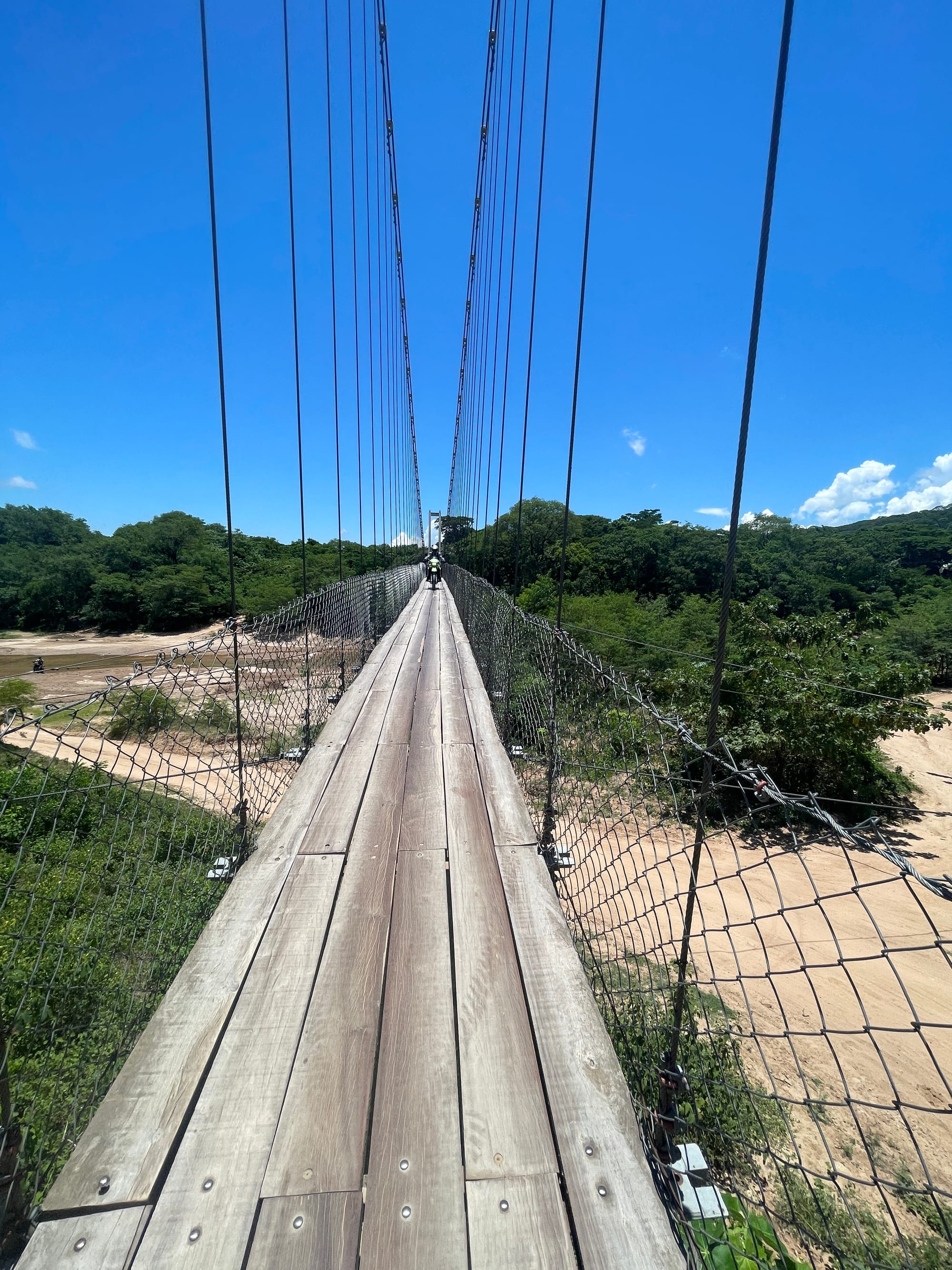 Day 1 was a test, and we passed — but barely. After our first run through traffic Chris took us across a hanging bridge where we had a couple of inches on each side of our handlebars to get through. The bridge was made of wooden slats and chains and fresh on my mind was the story Chris had told that morning about the person on his last trip who spilled on the bridge and got tangled in the chains and caused a huge mess.