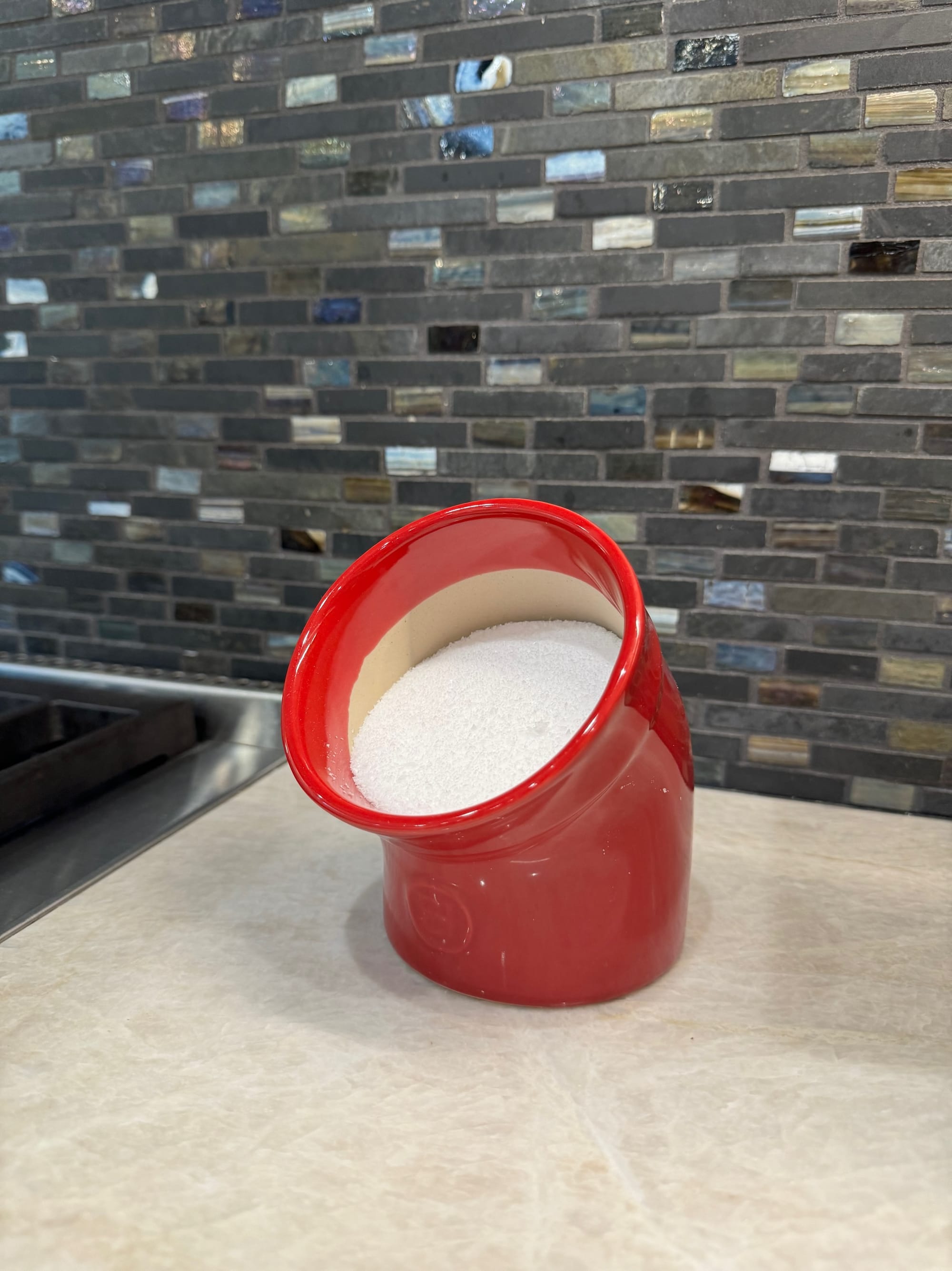 The red salt pig arrived a few days ago. I’d ordered it for my husband for Christmas, but he opened the Amazon box and saw it, miraculously unbroken, chucked in there with some nuts and bolts and wood polish. My order had gotten jumbled up with his.