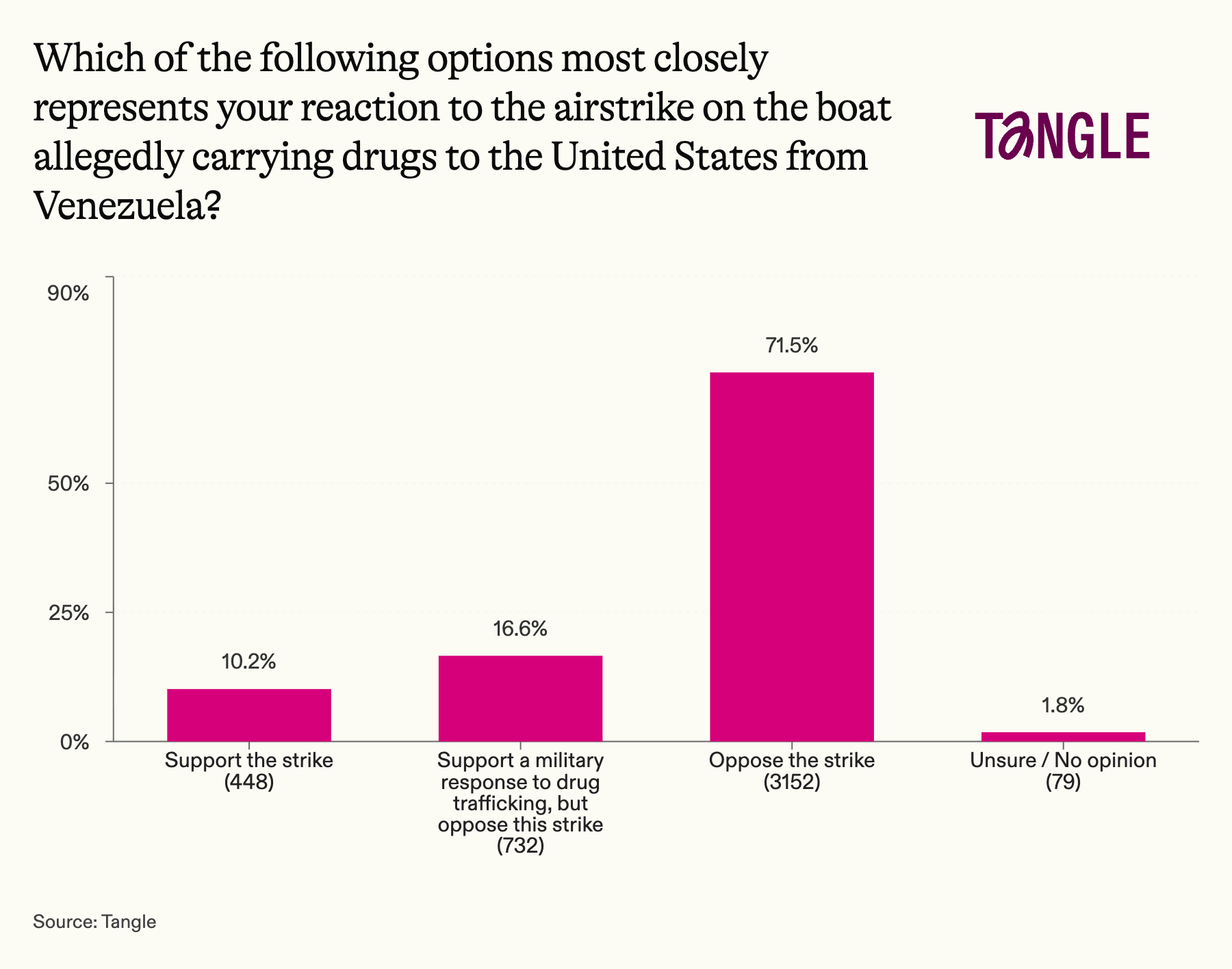 - Thursday’s survey: 4,411 readers responded to our survey on the alleged Venezuelan drug boat sinking with 72% saying they opposed the military response. “As your article says, it's clearly extrajudicial killing,” one respondent said.