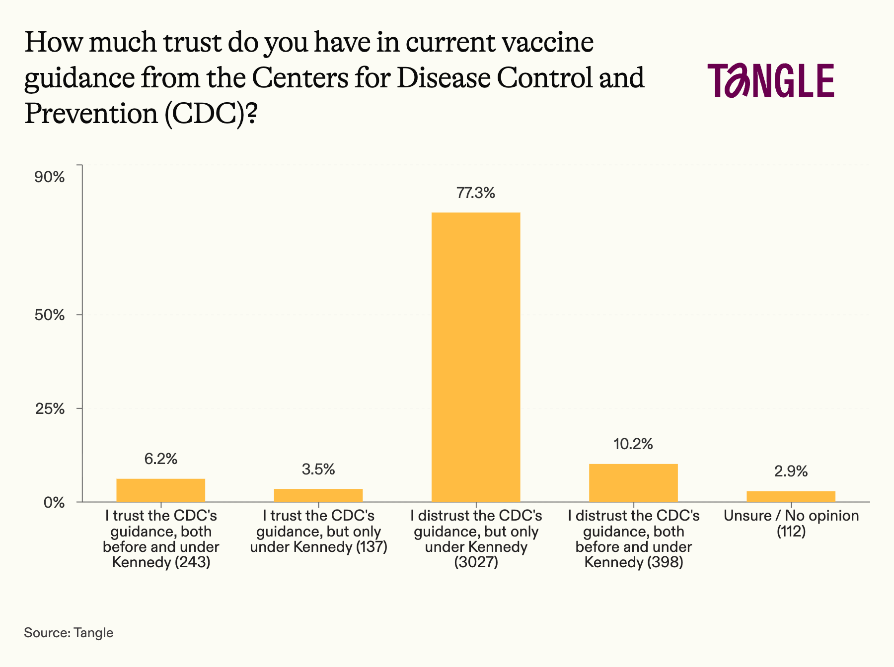 - Yesterday’s survey: 3,917 readers responded to our survey on the CDC with 77% saying they distrust the agency’s guidance under Kennedy. “I didn't completely trust CDC before Kennedy (they got a lot wrong on COVID) but have considerably more distrust under him,” one respondent said.