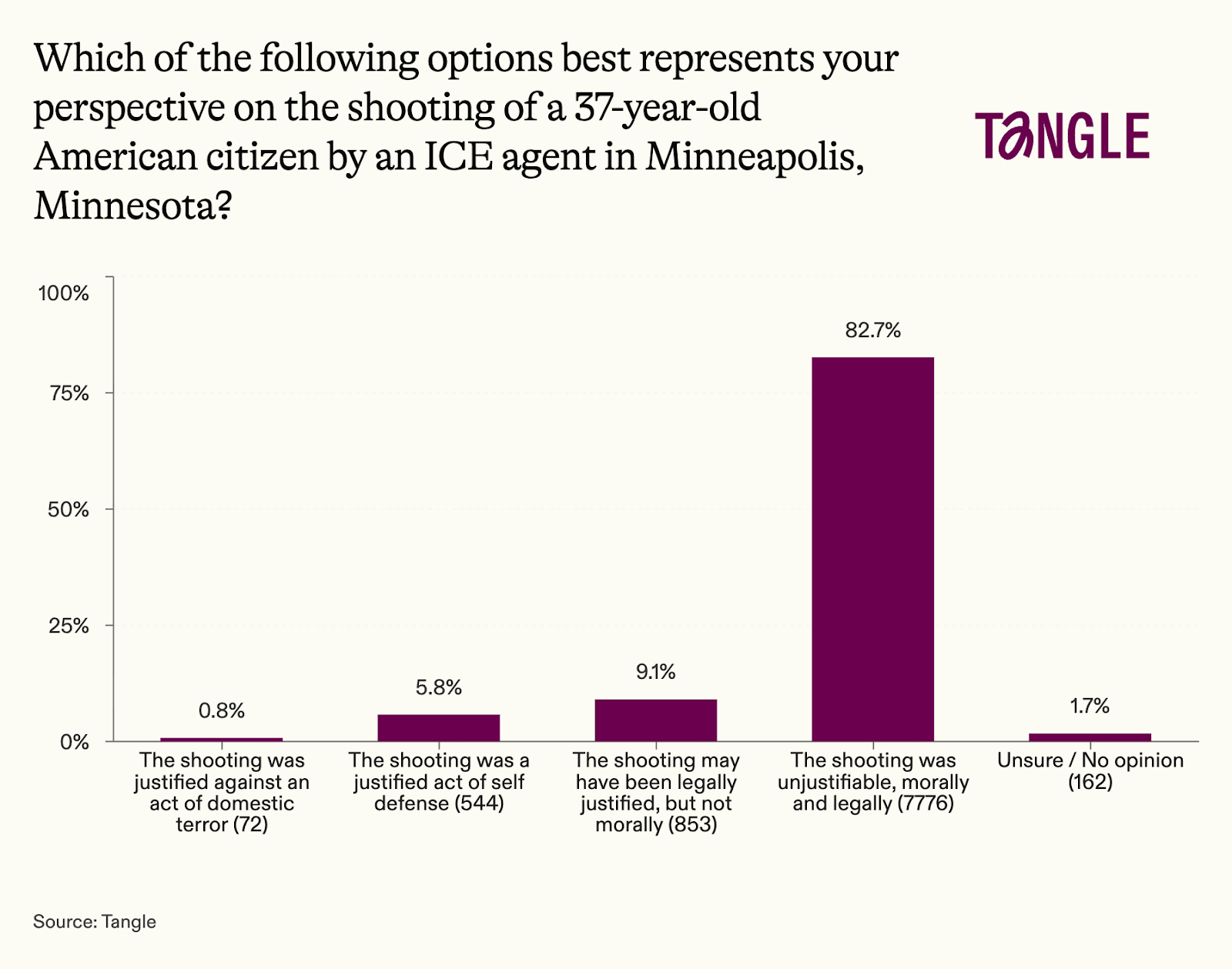 - Thursday’s survey: 9,407 readers responded to our survey on the Minneapolis ICE shooting with 83% saying it was morally and legally unjustifiable. “It was the predictable result of untrained ICE officers tasked to complete amoral missions for political reasons. It’s horrible and tragic,” one respondent said. “The masks at this point are for self and family defense,” said another.