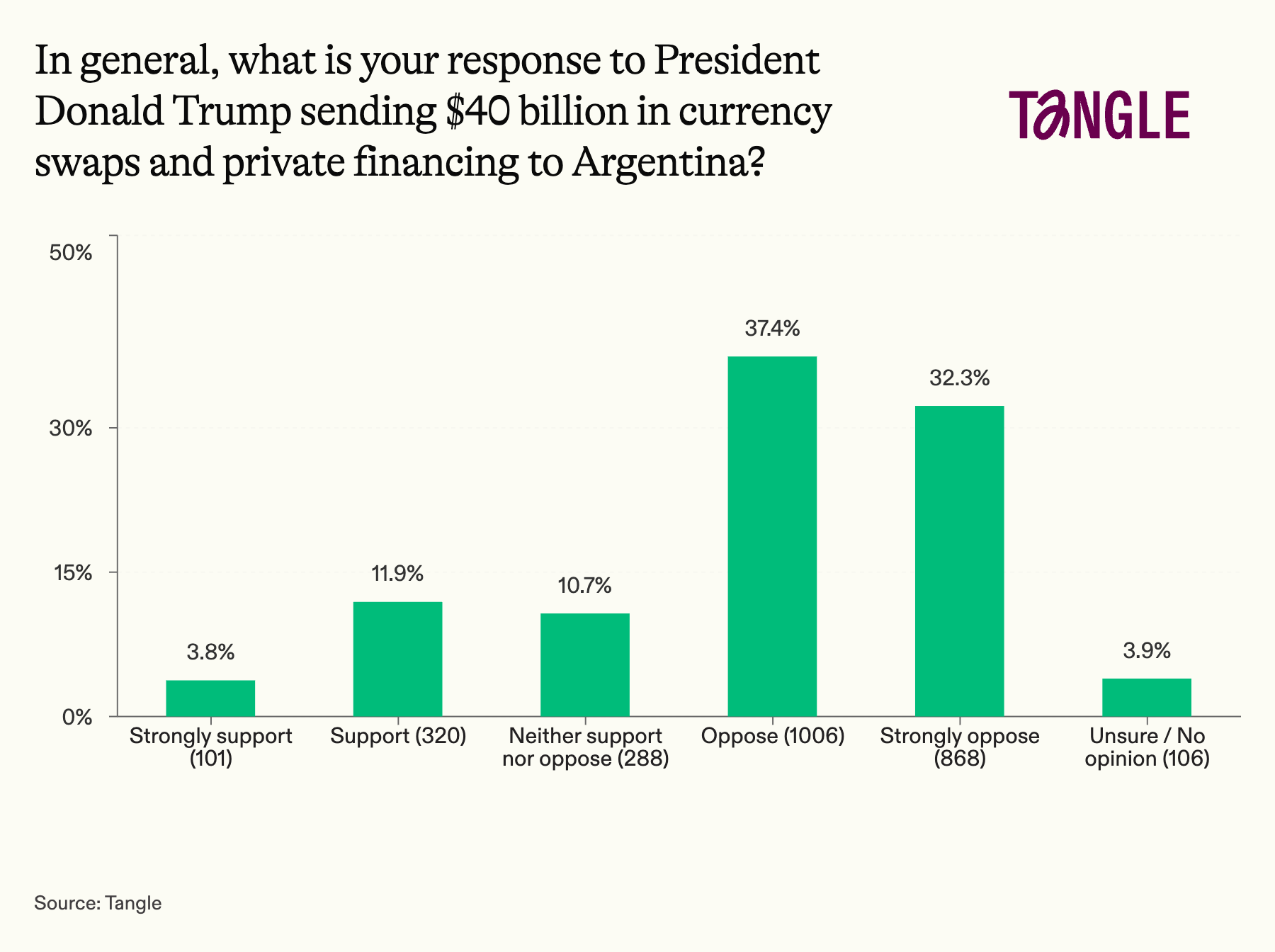 - Yesterday’s survey: 2,689 readers responded to our survey on the Argentina bailout with 69% opposed. “The money is needed HERE, in the U.S.,” one respondent said. “Let’s see what Trump gets out of Argentina in return. You never know what he’s thinking about when he makes deals like this,” said another.