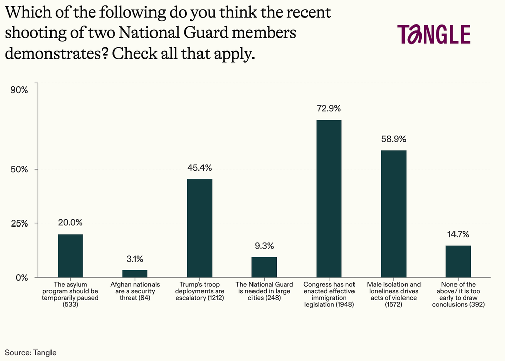 Our take:“The asylum program can be improved, but Afghan nationals are not some massive threat. Military leaders warned that troop deployments could provoke a response, though the Guard has been effective in D.C. You can look at this incident to prove whatever point you’re interested in making — including that Congress should do more.”