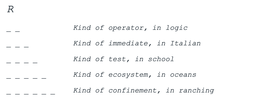 Starting with the first letter, add one letter in any position to the preceding line to answer the clue to each line.