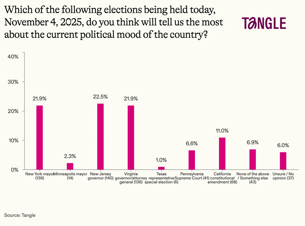 The key 2025 races. Tuesday was election day in the United States, with voters in cities and states across the country deciding on a host of key elections and ballot measures. Some races, like the New York City mayoral election, were in the national spotlight for months; others, like the Pennsylvania Supreme Court retention elections, flew under the radar but could be nationally impactful for years to come. On Tuesday, we published a special edition exploring these critical elections — sharing a brief overview of each race, two divergent perspectives on it, and a bit of our own analysis.