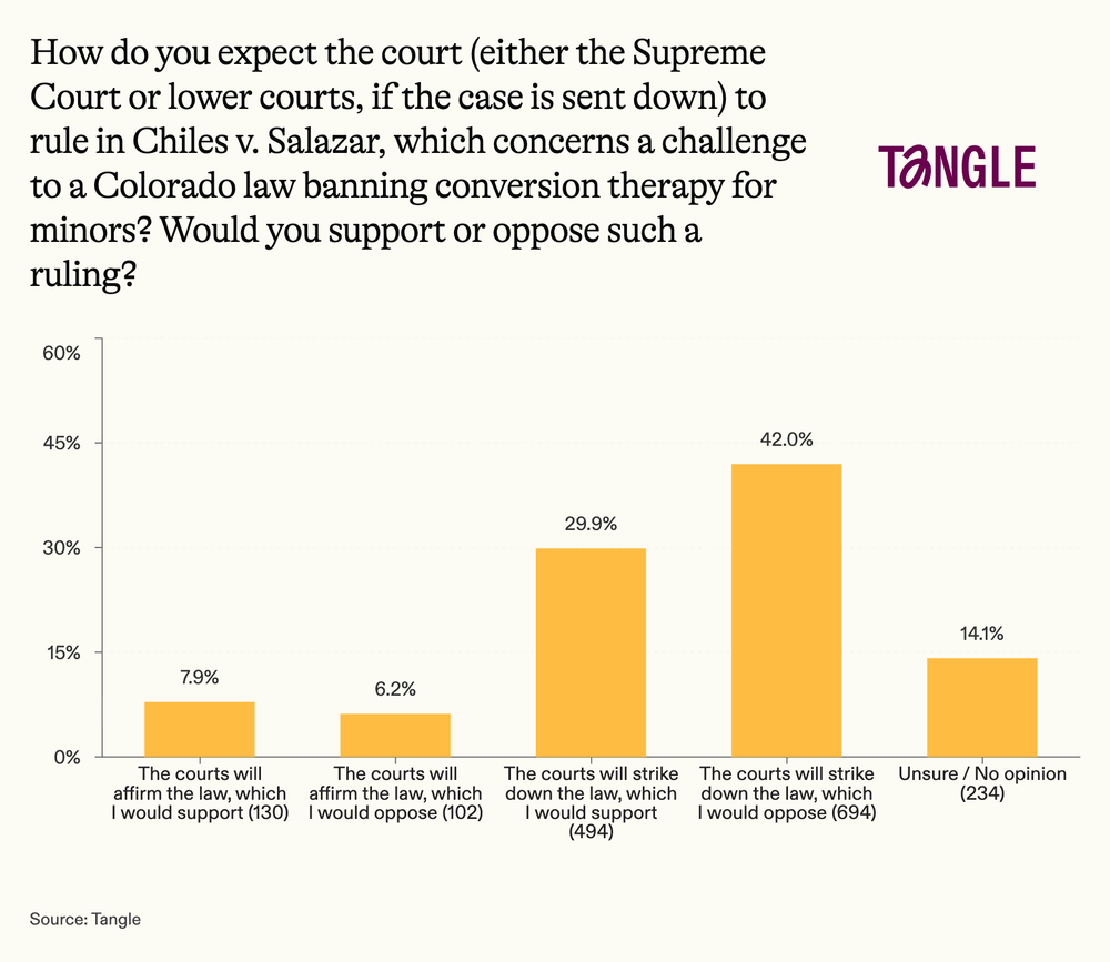 Our take:“I disagree with physical types of conversion therapy, but that's not what's at issue in this case. I expect the court to send this case down to lower courts to review the law under strict scrutiny. I would support that decision, but also generally support the Supreme Court repealing overly restrictive laws like Colorado’s.”
